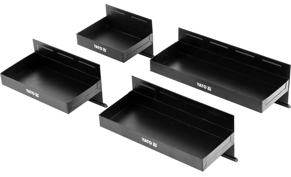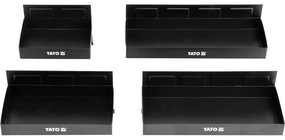 The magnetic tool tray set YATO YT-08682, developed by Yato Tools Poland, is an optimal solution for organizing small parts scientifically, neatly, and safely. The product set includes four sturdy steel trays integrated with strong magnets that can be directly fixed onto metal surfaces in the garage or tool cabinets.