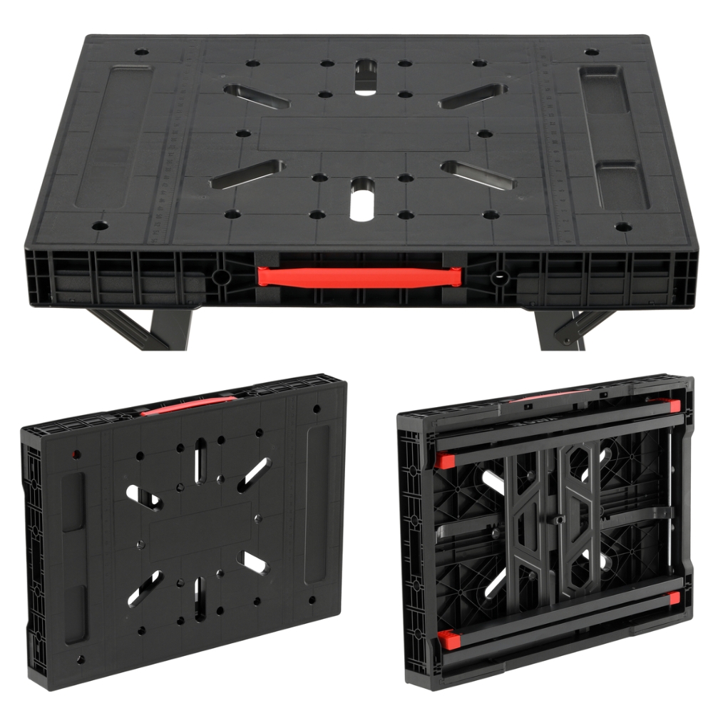 Yes. The table features a smart folding mechanism that saves space when folded and is easy to store. Additionally, it has a carrying handle, making it convenient for users to transport to job sites or other work areas.