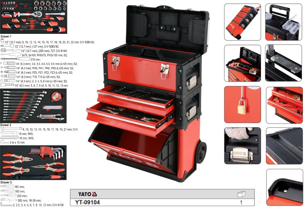 Yato YT-09104 4格78件工具箱适合多人使用,包括: