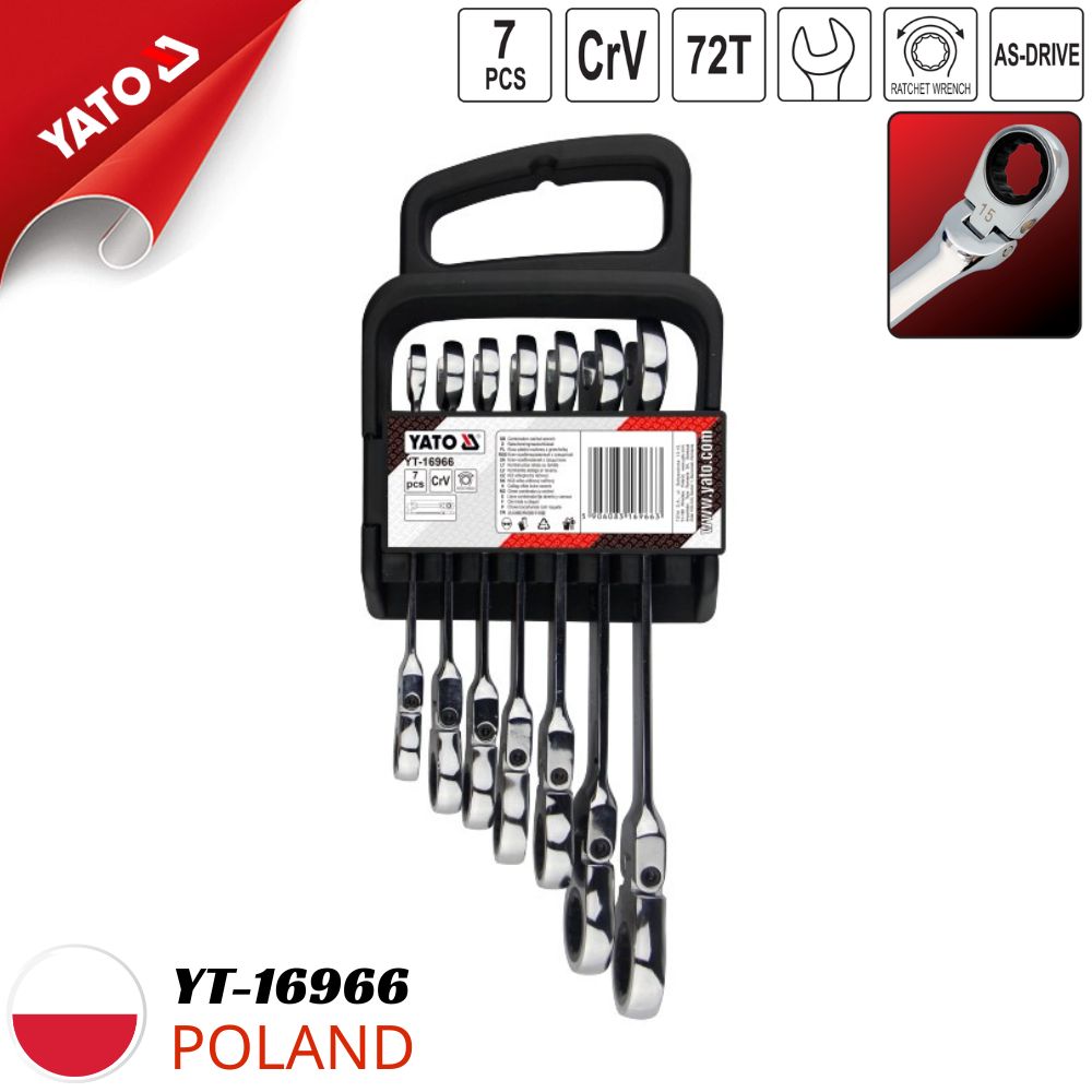今すぐ7ピース10-19mm Yato YT-16966ラチェットレンチセットを購入しましょう – ポーランドのYato Toolsと共に、より速く、より簡単に、よりプロフェッショナルに作業するための必須ツールです!