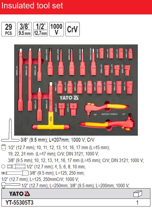 Technical Specifications of the Insulated Socket Wrench Set 29 Pieces Yato YT-55305T3: