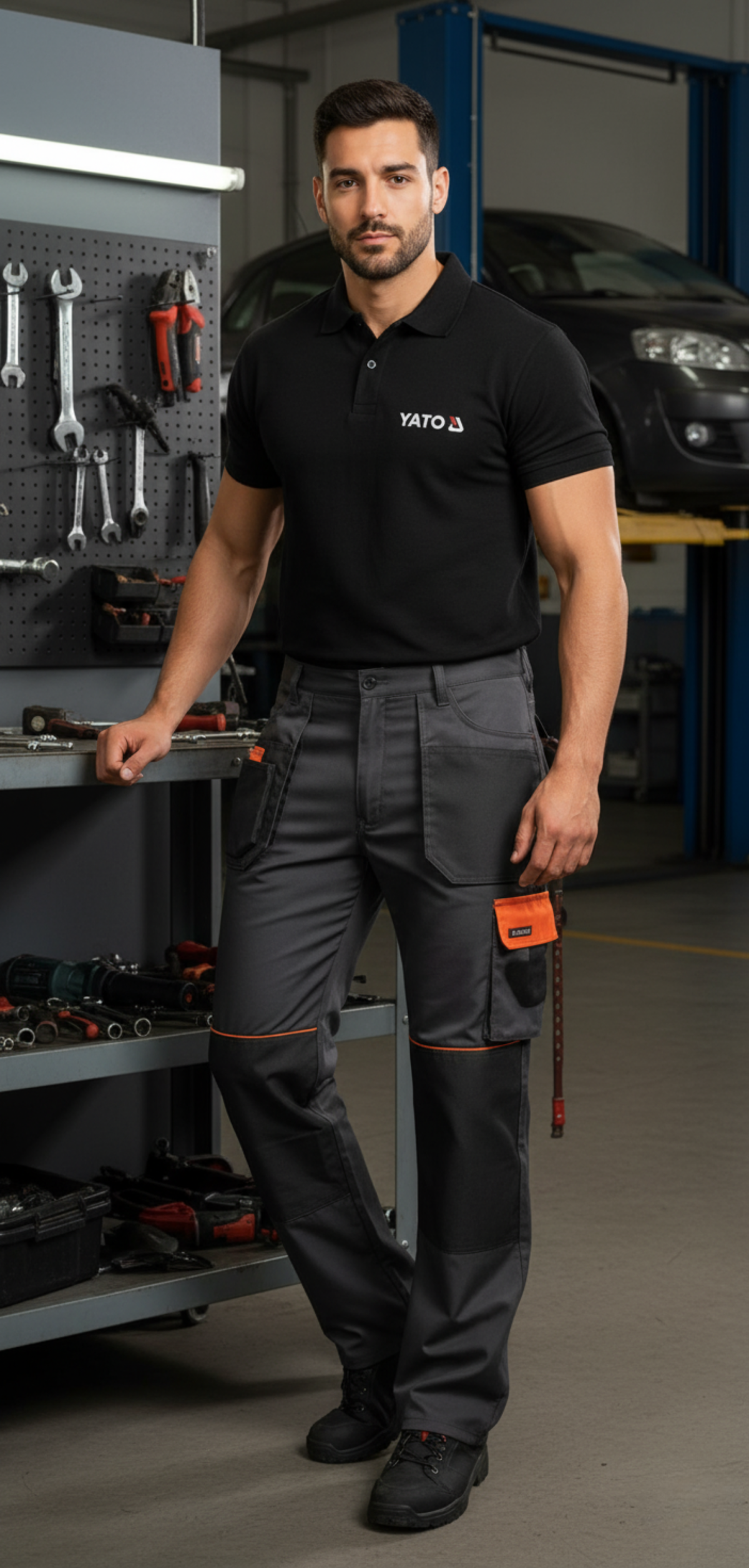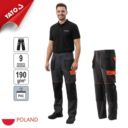 - Yato YT-80906 工作裤专为重工业、建筑和其他需要保护和舒适的工作环境而设计。